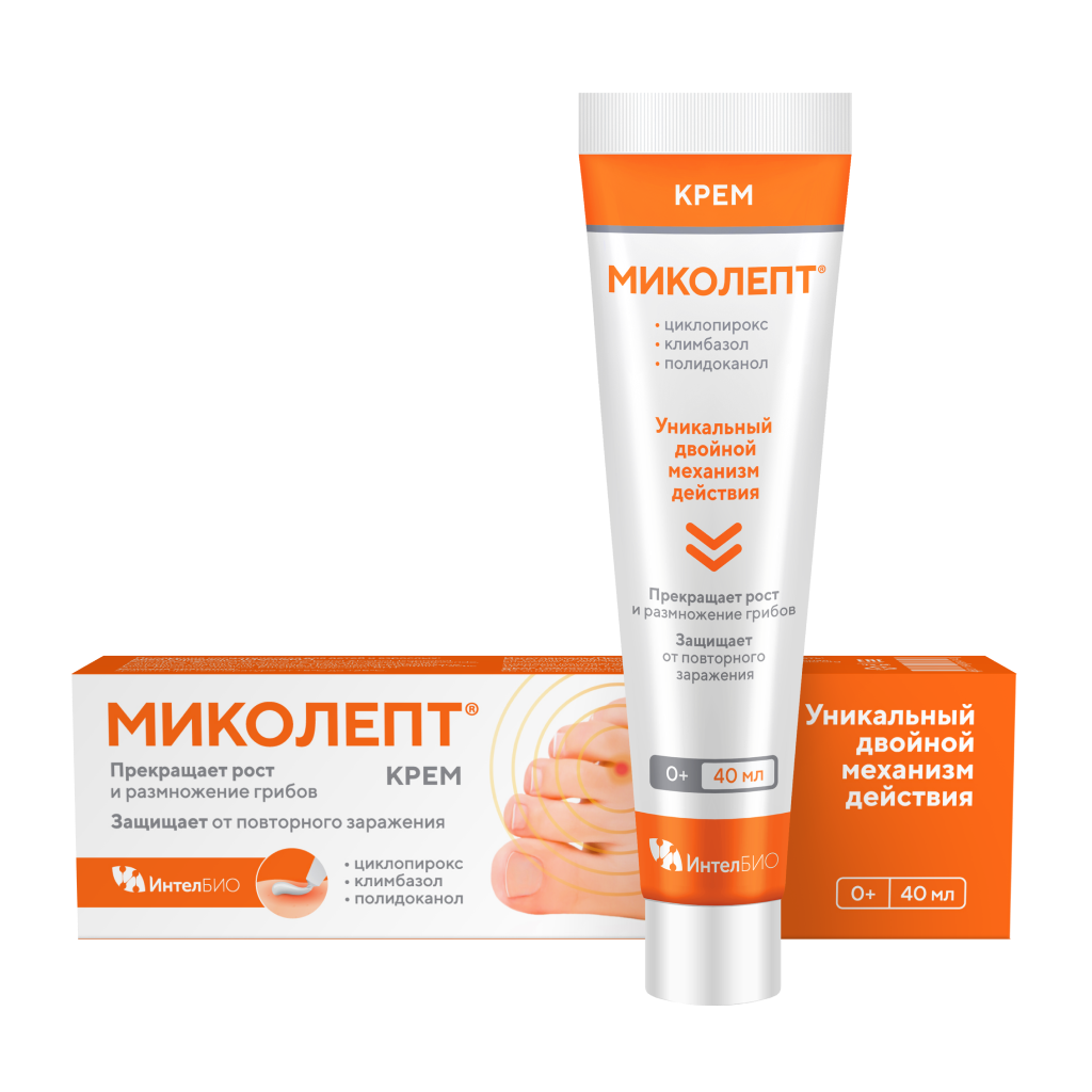 Крем Миколепт® имеет уникальный двойной механизм действия за счет входящих в состав циклопирокса и климбазола.