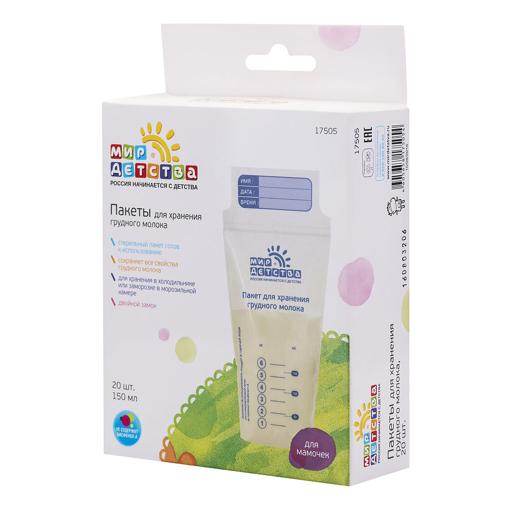 Мир Детства 150 мл 20 шт пакеты для хранения грудного молока ⭐ купить в интернет-аптеке Таблетка.ру (Ваша №1) | Москва и Московская область