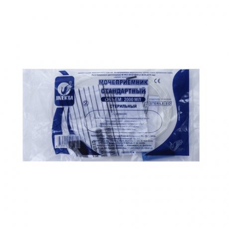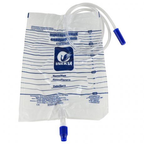 Мочеприемник медицинский однократного применения стандартный INEKTA 1 л изготовлен из мягкого поливинилхлорида медицинского назначения с укрепленными двойными швами, набжен невозвратным клапаном, исключающим обратный ток мочи. Винтовой спускной кран на дне мешка удобен при манипуляции и позволяет использовать мочеприёмник в течение более длительного времени (легко опорожнять его по мере необходимости), трубка устойчивая к перегибам , снабженная универсальным коннектором с защитным колпачком. Используется в клинических случааях, при которых пациентам необходим сбор мочи в результате катетеризации или дренирования мочевыводящих путей на любом уровне, когда больной находится в лежачем положении. Мочеприемник стерилен, объем 1 литр, имеет четыре армированных отверстия, позволяющие зафиксировать мочеприемник.