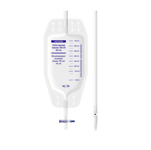 Мочеприемник изготовлен из мягкого ПВХ, не раздражающего кожу. Подводящая трубка длиной 50 см, на конце трубки универсальный коннектор конической формы переменного диаметра, подходящий к мочевым катетерам любого размера и типа. Коннектор защищен съемным колпачком. Емкость-мешок мочеприемника снабжена антивозвратным клапаном, предотвращающим обратный ток мочи, а также удобным в использовании Т-образным сливным краном в нижней части для опорожнения мешка. На передней стенке мочеприемника имеется градуировка от 50 мл с ценой деления 50 мл. В комплекте прилагаются эластичные ленты длиной 40 см с застежками для крепления как к бедру, так и к голени. Задняя стенка мочеприемника снабжена мягкой вкладкой из нетканого материала для комфортного прилегания мешка к коже пациента. Мочеприемник предназначен для использования как мужчинами, так и женщинами.