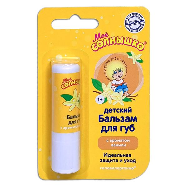 Бальзам для ежедневного ухода и защиты нежной кожи губ ребенка. Содержит экстракт календулы и витамин Е. Обладает приятным ароматом ванили. Смягчает и питает детскую кожу губ, защищает её от обветривания.