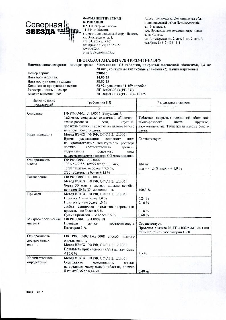 • Сертификаты и лицензии “Моксонидин-СЗ 400 мкг 60 шт таблетки покрытые пленочной оболочкой”