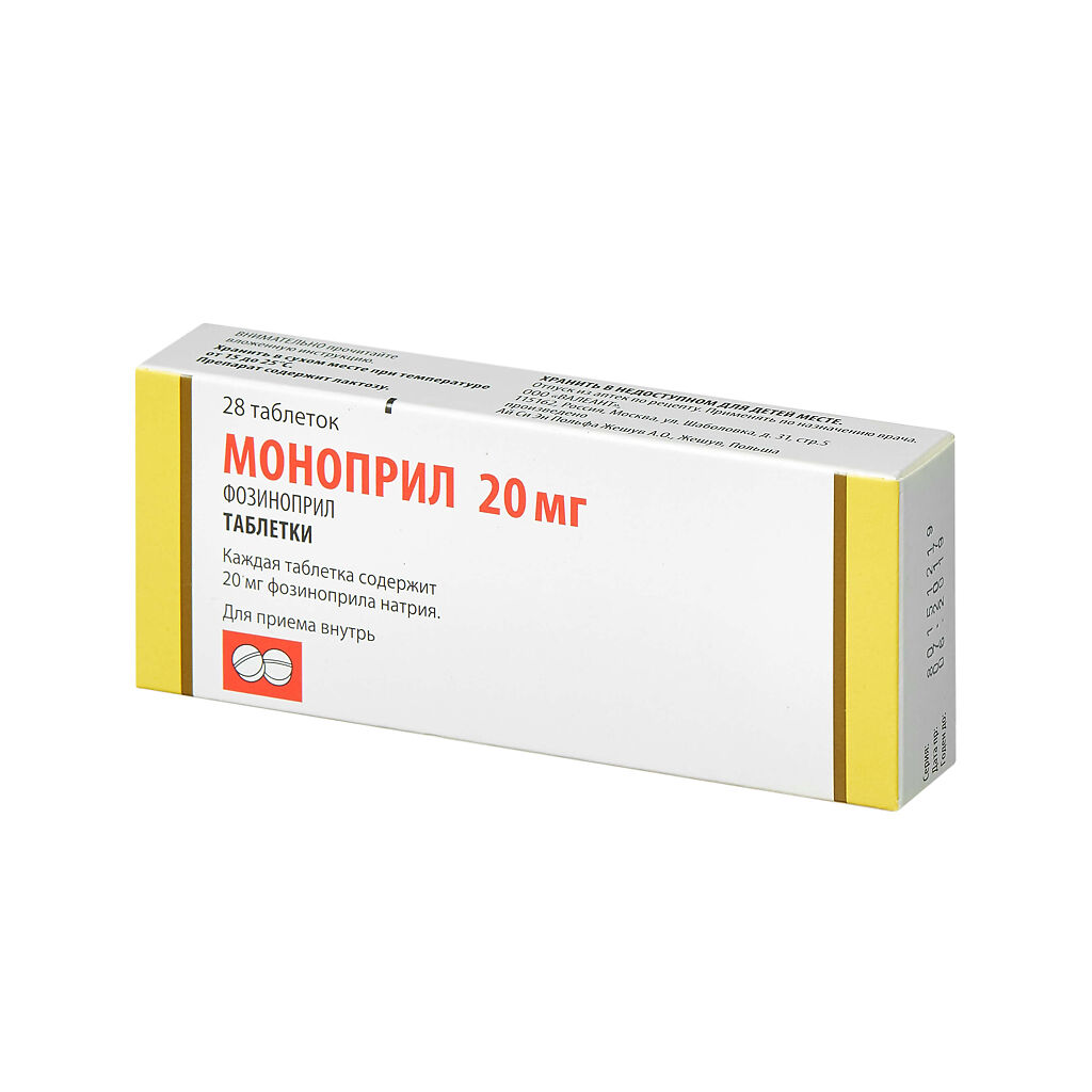 Если лечение препаратом Моноприл начинают на фоне проводимой терапии диуретиками, его начальная доза должна составлять не более 10 мг (1/2 таб. по 20 мг) при регулярном врачебном контроле за состоянием пациента. Максимальная суточная доза составляет 40 мг.