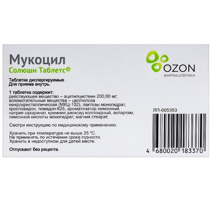 дети от 6 до 14 лет: 100 мг (в перерасчете на необходимое количество таблеток диспергируемых) 3-4 раза в день или 200 мг (в перерасчете на необходимое количество таблеток диспергируемых) 2 раза в день (соответствует 300-400 мг ацетилцистеина в день).