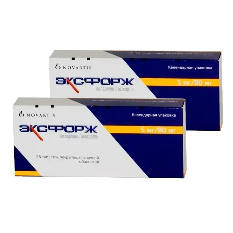 Эксфорж®, 5 мг + 80 мг, таблетки, покрытые пленочной оболочкой