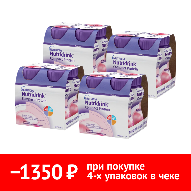 НУТРИДРИНК КОМПАКТ ПРОТЕИН КЛУБНИКА СМЕСЬ 125МЛ N4 - жидкая, готовая к употреблению, высокобелковая, высококалорийная смесь. Предназначена для взрослых пациентов с недостаточностью питания или риском ее развития.