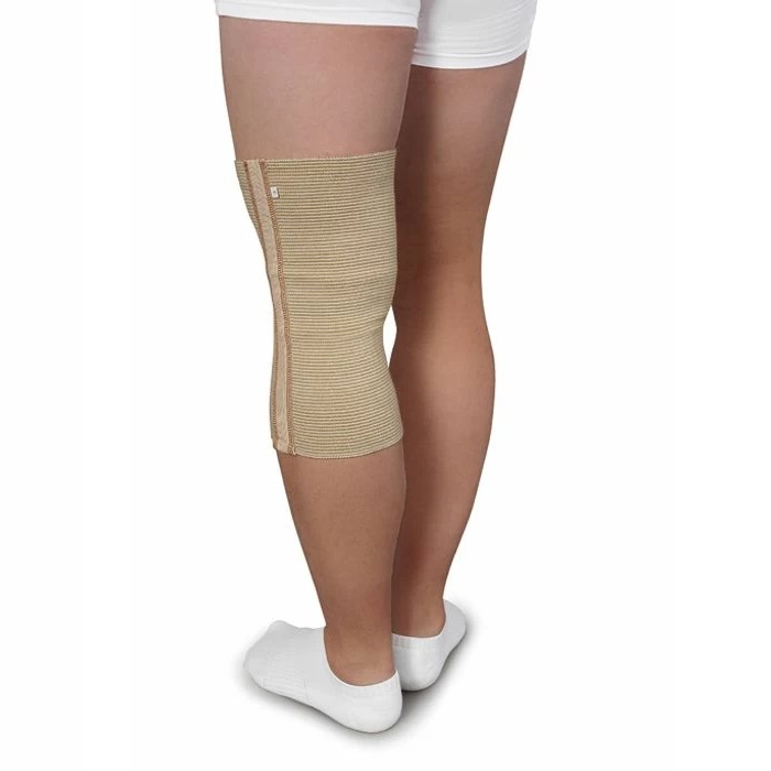 Для лучшего сохранения тепла в полотно добавлена шерстяная нить. Для равномерного распределения компрессии наколенник с двух сторон усилен тесьмой.