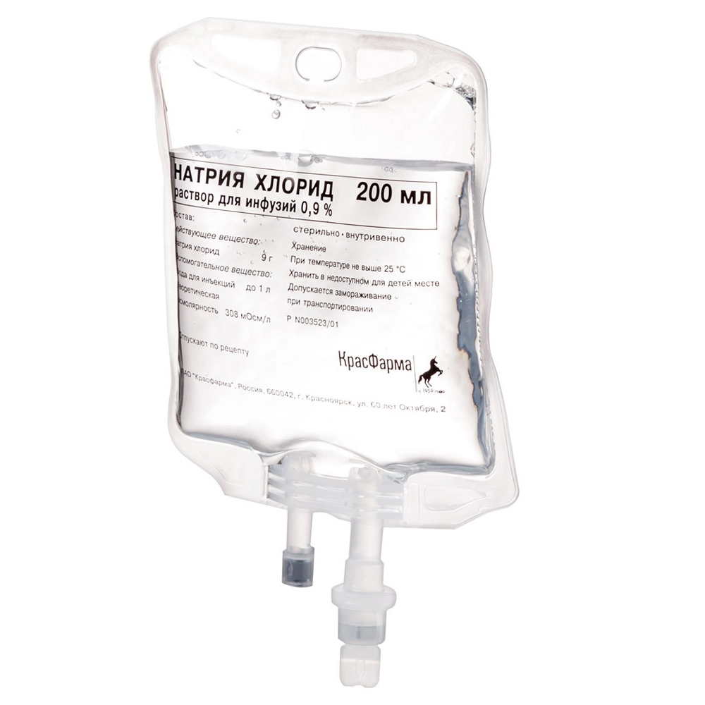 Действующее вещество: натрия хлорид 9 г.