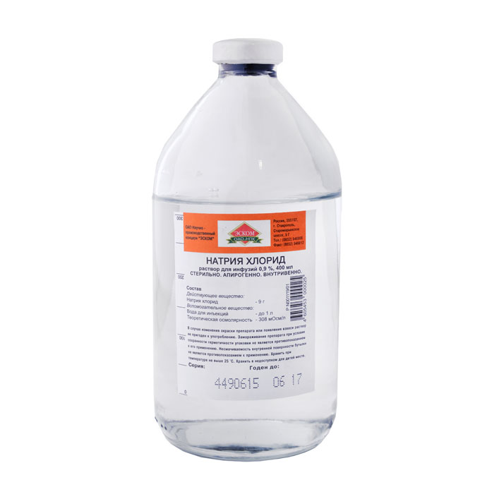 Действующие вещества: натрия хлорид 9 г,
