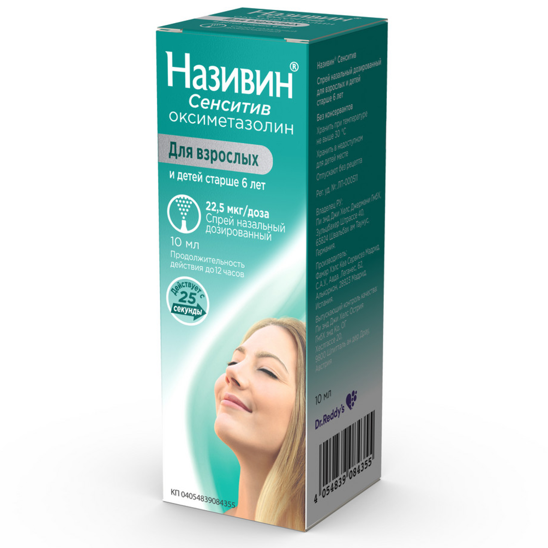 Називин® Сенситив спрей назальный дозированный 22,5 мкг/доза предназначен для инраназального введения.