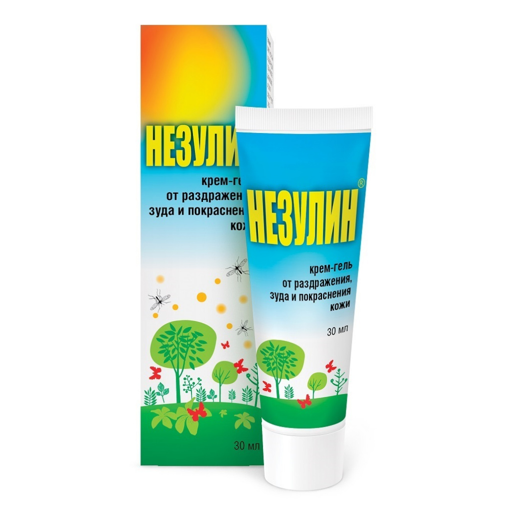 Крем-гель Незулин – используют в качестве помощи от раздражения, зуда и покраснения кожи и специально для тех людей, кому необходимо точечно и быстро устранить неприятные ощущения на коже после укусов насекомых. Активные компоненты крема успокаивает и охлаждает, улучшает процессы обновления клеток кожи, повышает её защитные функции, придаёт коже здоровый внешний вид.