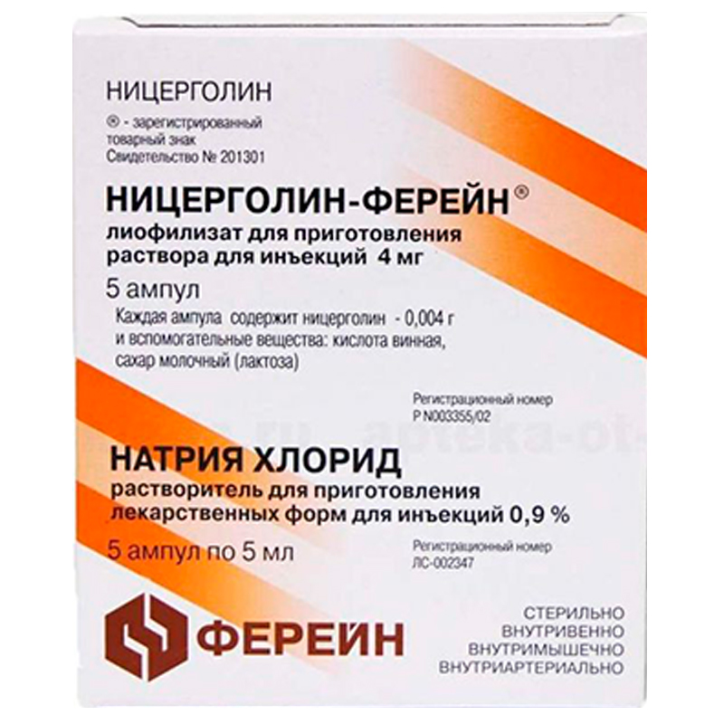 Действующее вещество: ницерголин 4 мг