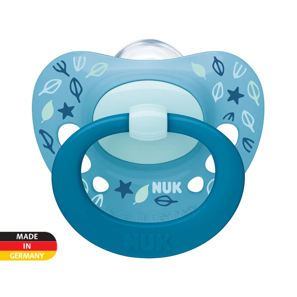 Соски-пустышки имеют оригинальную ортодонтическую форму, способствующую здоровому развитию челюсти ребенка. Разработаны практикующими стоматологами. Форма соски заимствована у самой природы. Все соски – пустышки NUK снабжены антиколиковой системой NUK Air System, выпускающей воздух из сжатой соски, поэтому соска остается мягкой и податливой, прекрасно приспосабливается к ротовой полости младенца.