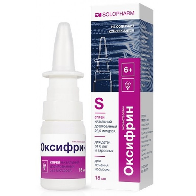 - 22,5 мкг оксиметазолина гидрохлорида - для Оксифрин, спрей назальный дозированный 22,5 мкг/доза.