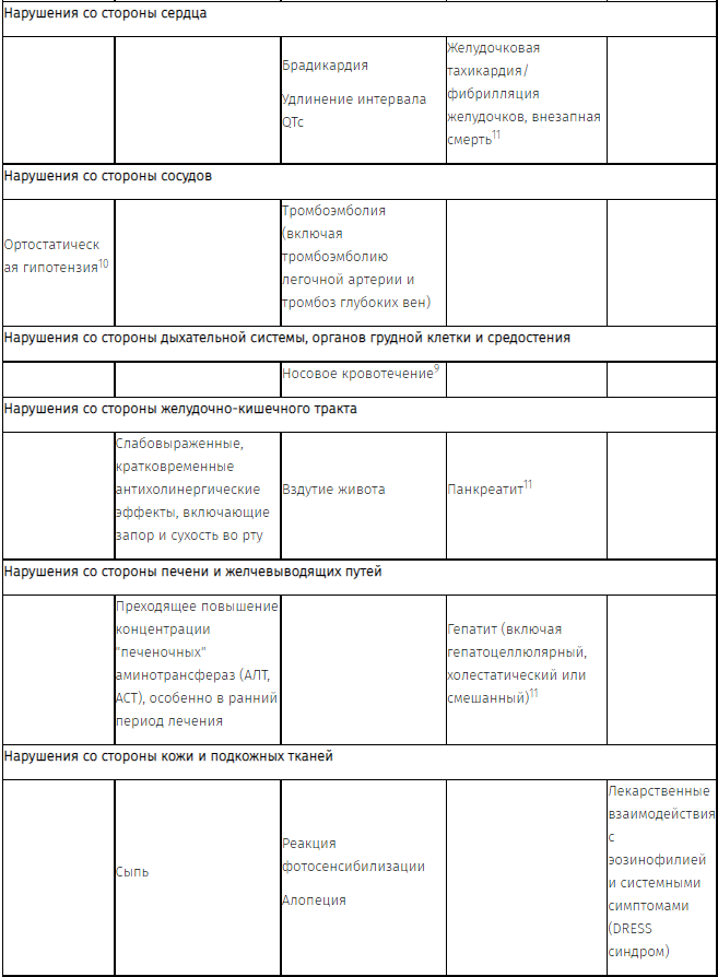 9 Нежелательные явления, зафиксированные во время клинических исследований с оланзапином.