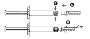 5) Удерживая иглу, зафиксируйте ее на месте, слегка повернув по часовой стрелке (позиция 6). Снимите крышку перед введением.