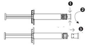 3) Аккуратно снимите колпачок наконечника, как показано на позиции 3. Это может предотвратить образование пузырьков воздуха.