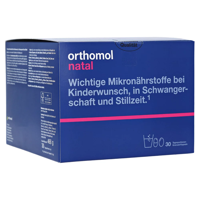 Orthomol Natal — ортомолекулярный комплекс нутритивной поддержки, предназначенный для женщин, которые планируют беременность, вынашивают плод или кормят грудью. Препарат позволяет насытить организм витаминами и микроэлементами, стабилизировать пищеварение, стимулировать усвоение необходимых питательных веществ из пищи. Кроме того, Ортомол Натал представляет собой средство профилактики пренатальной патологии, обусловленной недостатком нутриентов.