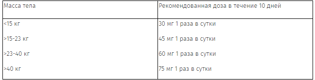 Дети, которые могут проглатывать капсулы, также могут получать профилактическую терапию, принимая по 75 мг (одна капсула 75 мг или одна капсула 30 мг + одна капсула 45 мг) 1 раз в сутки в течение 10 дней.