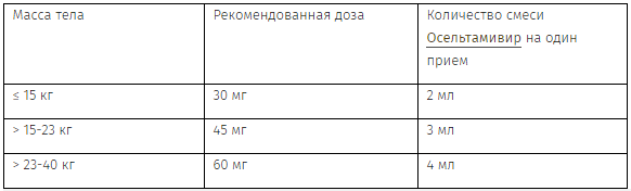 Рекомендованный режим дозирования осельтамивира капсулы 30 и 45 мг или экстемпорально приготовленной суспензии: