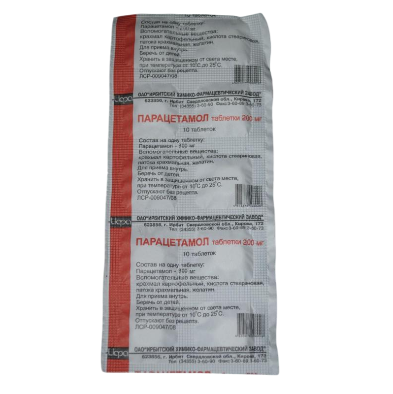 Действующее вещество: парацетамол - 200 мг или 500 мг;
