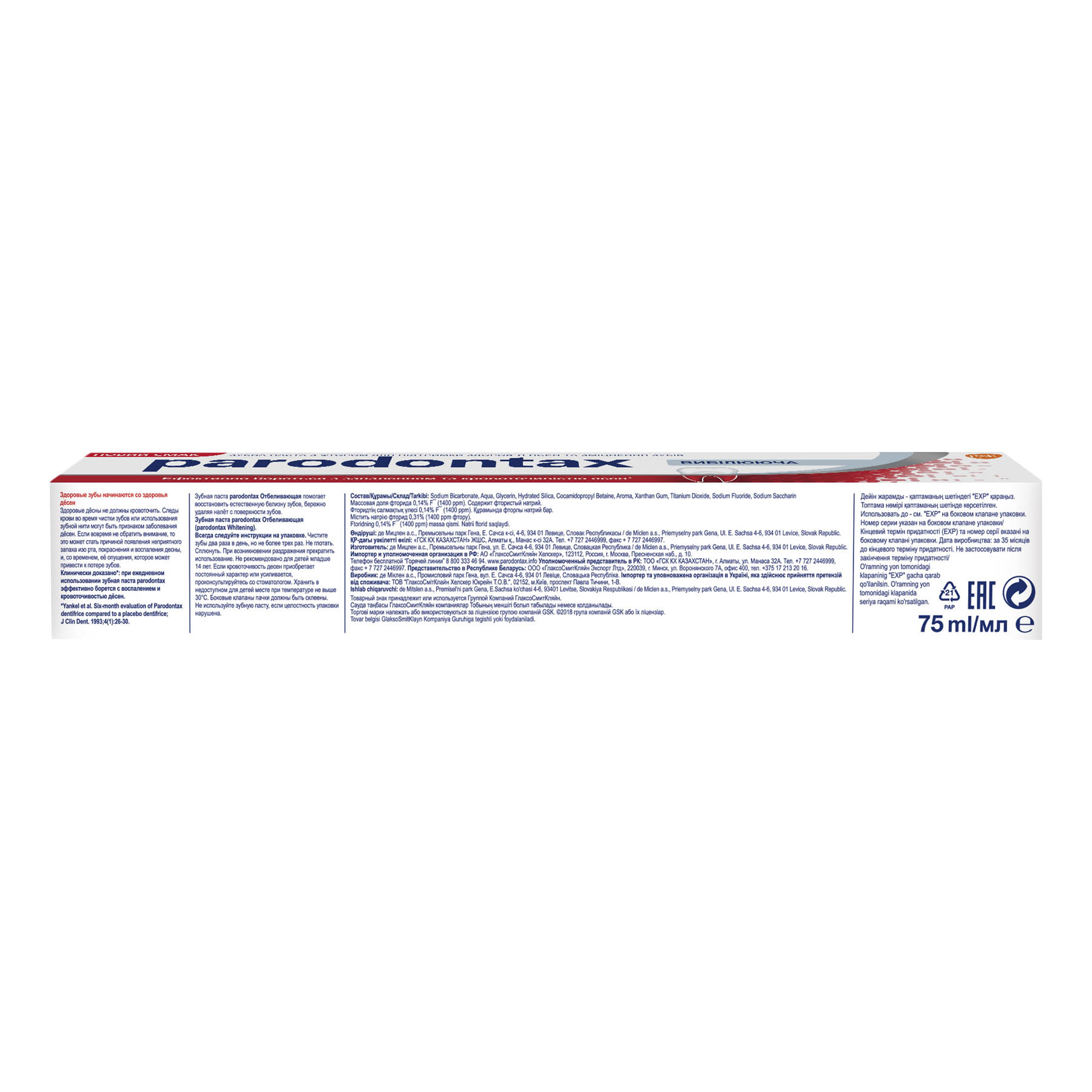 Зубная паста Parodontax "Бережное отбеливание" имеет специальную формулу, которая помогает устранить кровоточивость десен, а также эффективно, но бережно удаляет пятна, возвращая зубам их естественную белизну.