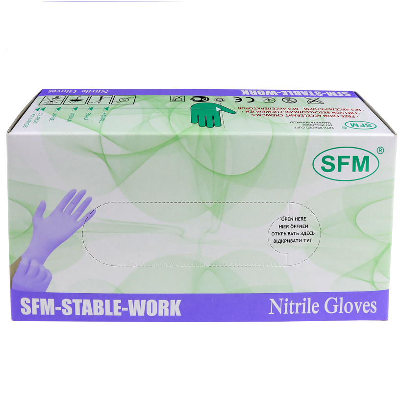 Смотровые нестерильные нитриловые перчатки SFM подходят для всех видов обследования, диагностике и ухода за больным, а также могут применяться в ветеринарии для осмотров. Изготовлены из нитрила.