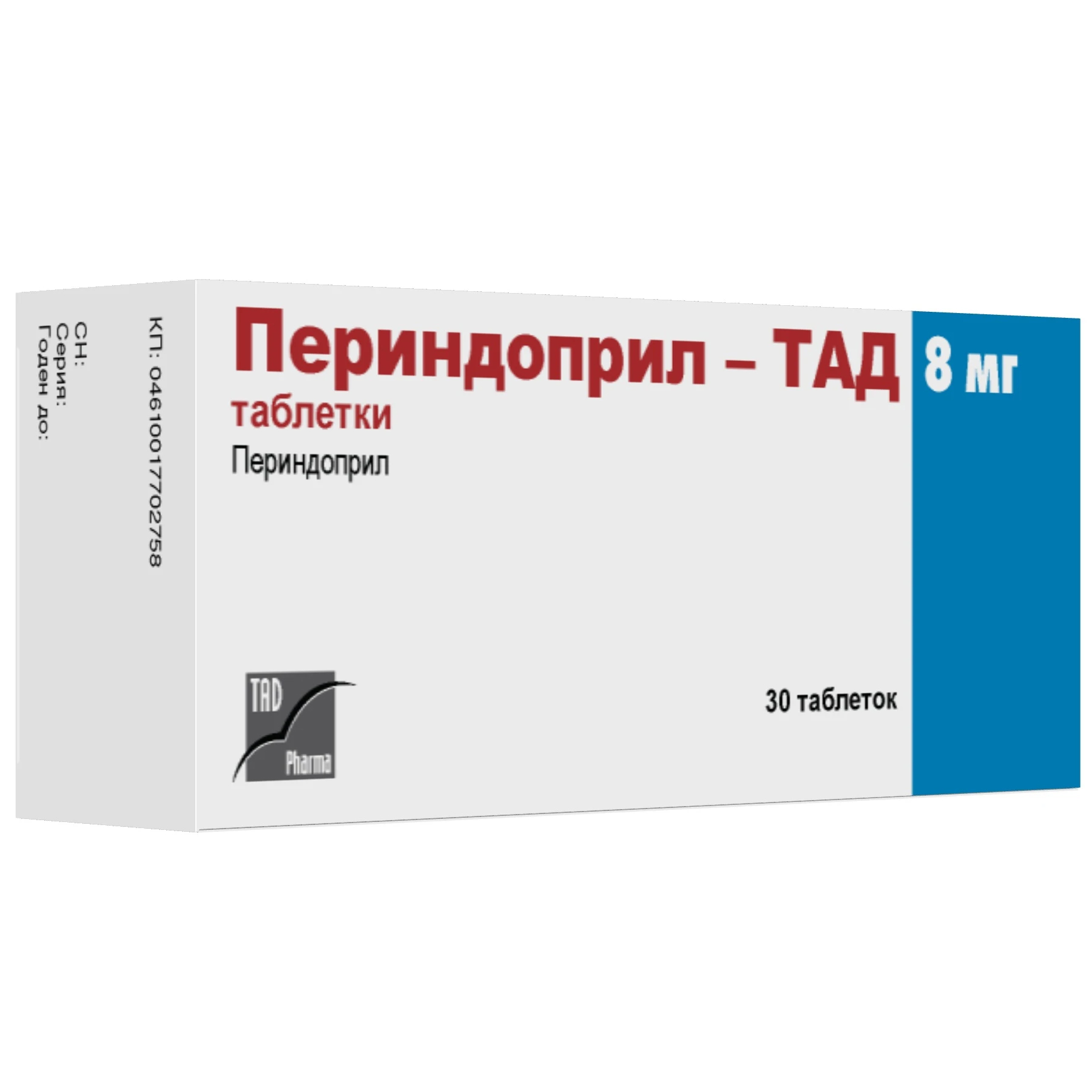Действующее вещество:периндоприла эрбумин 8,000 мг