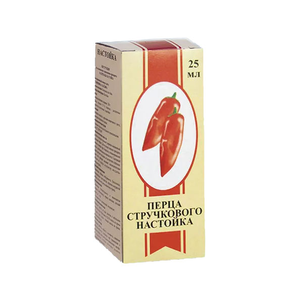 Фармакологические свойства настойки перца стручкового обусловлены содержанием алколоида капсаицина. Препарат обладает местным раздражающим, отвлекающим и разогревающим действием, вызывая усиление местного кровотока в коже, воздействуя на болезненные процессы, локализованные также и в глубине тканей.