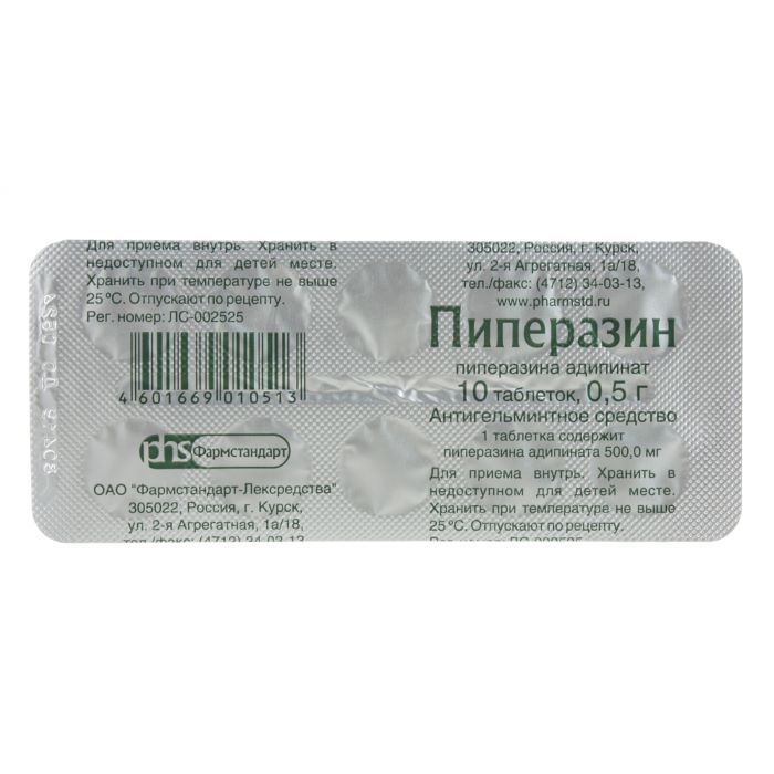 Активное вещество: пиперазина адипинат - 0.5 г.