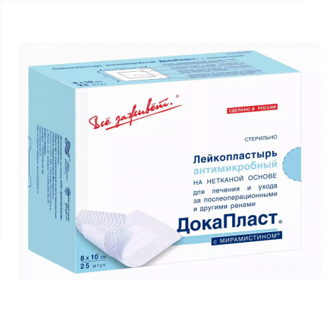 Антимикробная повязка-пластырь «ДокаПласт» обеспечивает хорошую антибактериальную защиту раны. Она позволяет обезопасить травмированный участок кожи от механических и бактериальных воздействий не хуже, чем марлевая повязка, при этом обладая рядом существенных преимуществ.