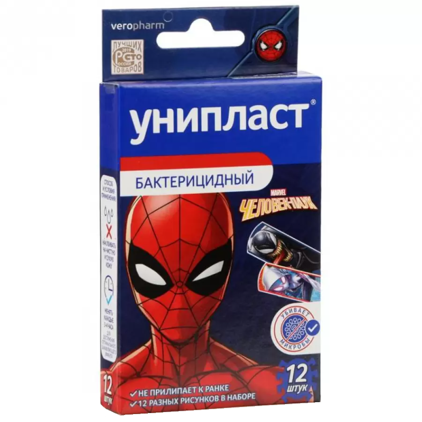 Пластырь бактерицидный Унипласт №12 детск человек-паук шоу-бокс ⭐ купить выгодно в онлайн-аптеке Таблетка.ру (Ваша №1) | Москва и Московская область