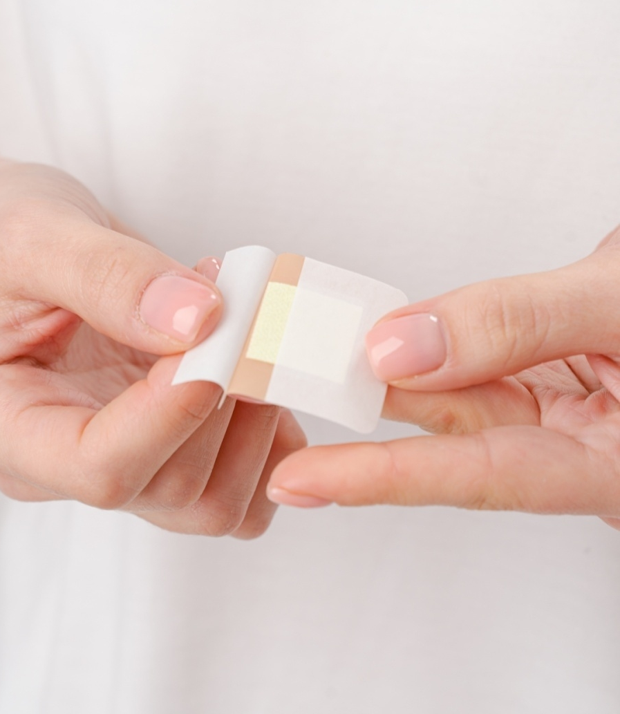 Перед применением пластыря нужно очистить поврежденный участок кожи. Чистыми сухими руками извлечь пластырь из индивидуальной упаковки, как показано на наших фото, и аккуратно, не прикасаясь к сорбционной подушечке пальцами, приложить на поврежденную поверхность кожи. Края пластыря надежно зафиксировать, не допуская возникновения складок.