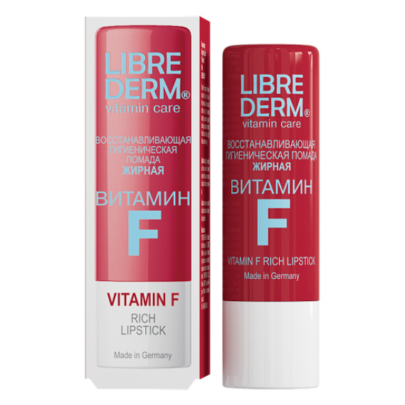 Восстанавливающая гигиеническая помада Витамин F жирная активно смягчает, питает и успокаивает кожу губ, предотвращает образование сухости и трещин, восстанавливает эластичность, придавая коже здоровый вид. Защищает от обветривания.