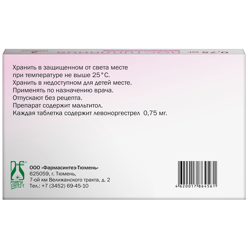 Действующее вещество: левоноргестрел - 0,75 мг;