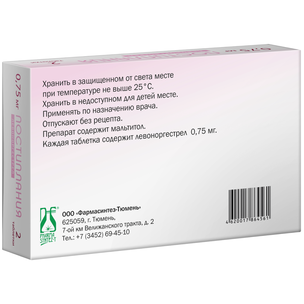 Если в течение 3-х часов после приема первой или второй таблетки произошла рвота, то следует принять ещё одну таблетку препарата Постиплания 0,75 мг.