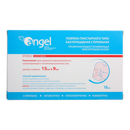 Angel 9 см x 15 см 10 шт повязка раневая бактерицидная стерильная ⭐ купить в онлайн-аптеке Таблетка.ру (Ваша №1) | Москва и Московская область