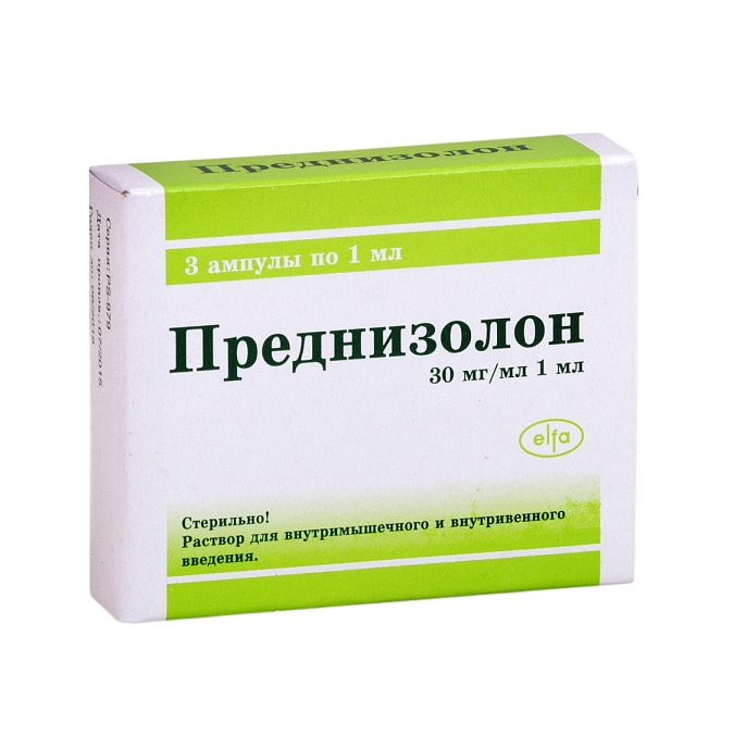 Активное вещество: преднизолона натрия фосфат (эквивалентно преднизолону) 30 мг.