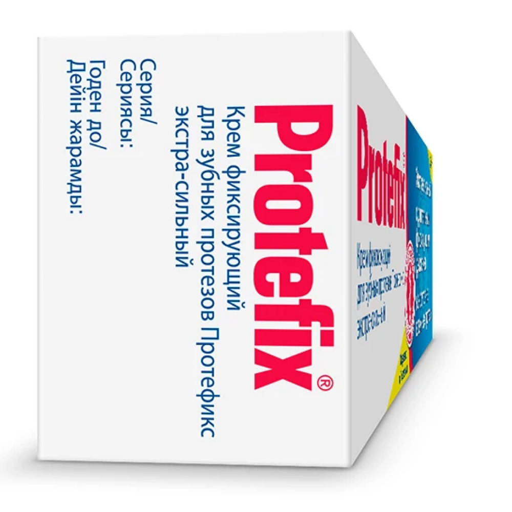 Он легко наносится, сохраняет свои свойства под воздействием горячей и холодной пищи, лишен вкуса и запаха, не меняет вкус еды и напитков, не оказывает негативного воздействия на желудок. Не смывается слюной и равномерно распределяется по всей прилегающей к десне поверхности. Фиксирующий крем Protefix® (Протефикс) очень экономичен: упаковки хватает приблизительно на 2 месяца.
