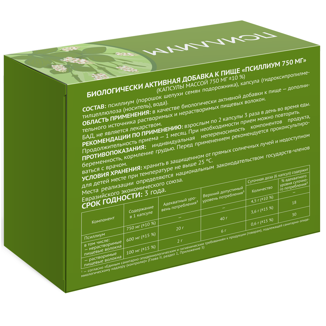 Псиллиум является богатым источником нерастворимой и растворимой клетчатки, которая способствует нормализации работы кишечника, а также содержит малоусвояемые углеводы, положительно влияющие на его микрофлору.