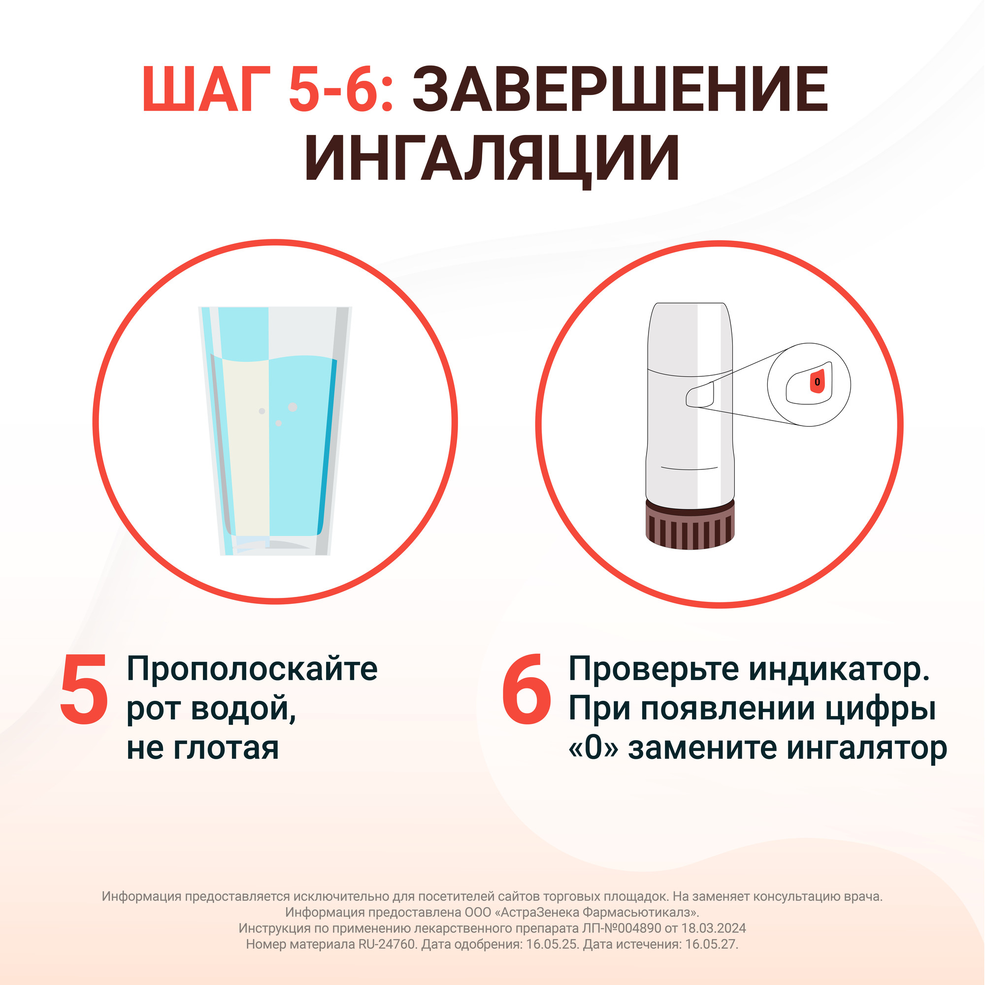 После каждой ингаляции препарата прополощите рот водой для снижения риска развития грибковой инфекции ротовой полости и горла.