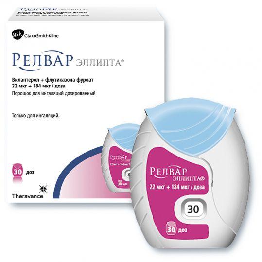 Препарат Релвар Эллипта в дозировке 22 мкг+184 мкг следует назначать пациентам, которым требуется более высокая доза ингаляционных ГКС, применяемых в комбинации с бета2-агонистами длительного действия.