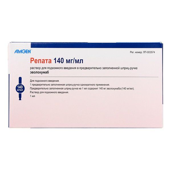 Изучения лекарственных взаимодействий не проводилось. Фармакокинетическое взаимодействие между статинами и эволокумабом оценивали в программе клинических исследований. Отмечалось приблизительно 20% увеличение клиренса эволокумаба при одновременном применении со статинами. Увеличенный клиренс обусловлен опосредованным статинами повышением концентрации PCSK9, что тем не менее не влияло на фармакодинамический эффект эволокумаба в отношении липидов. Не требуется коррекции доз статинов при одновременном назначении с препаратом Репата.