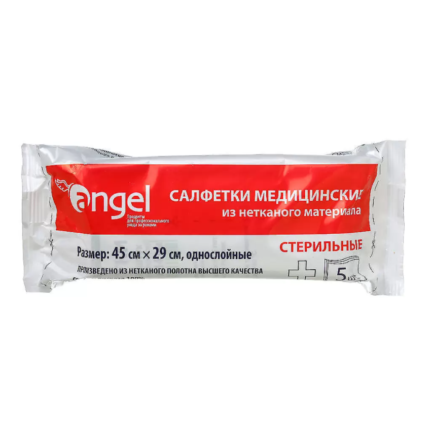 Angel 45 см x 29 см 5 шт салфетки стерильные 2-х слойные из нетканого материала ⭐ купить дешево в онлайн-аптеке Таблетка.ру (Ваша №1) | Москва и Московская область