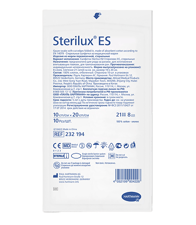 Sterilux ES 10 х 20 см 10 шт салфетки стерильные 21 нить 8 слоев ⭐ купить по выгодной цене в аптеке Таблетка.ру (Ваша №1) | Москва и Московская область