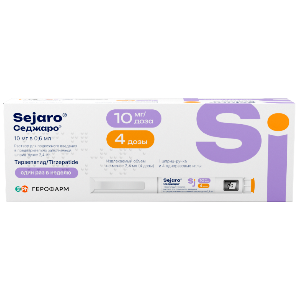 Каждая доза содержит 10 мг тирзепатида в 0,6 мл раствора.