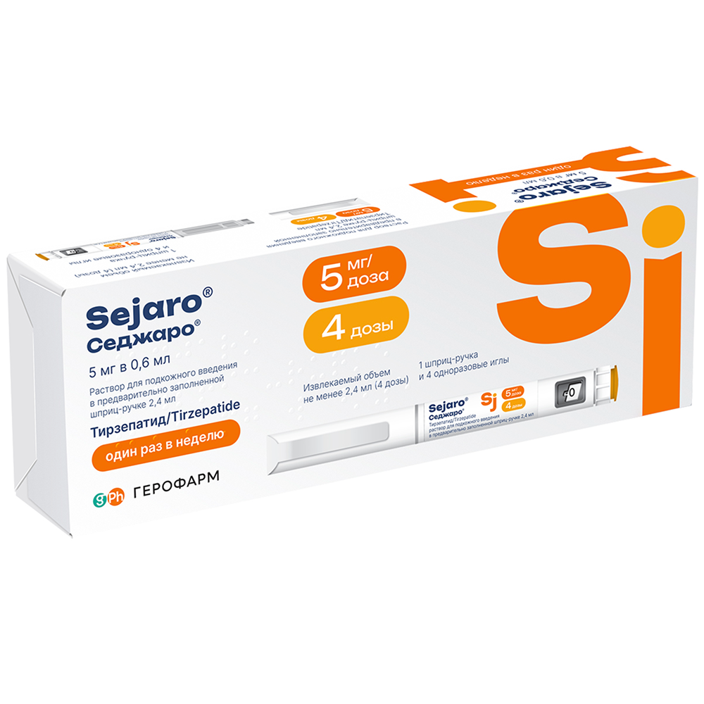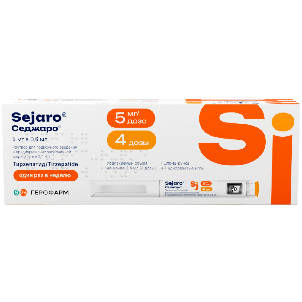 Каждая доза содержит 5 мг тирзепатида в 0,6 мл раствора.