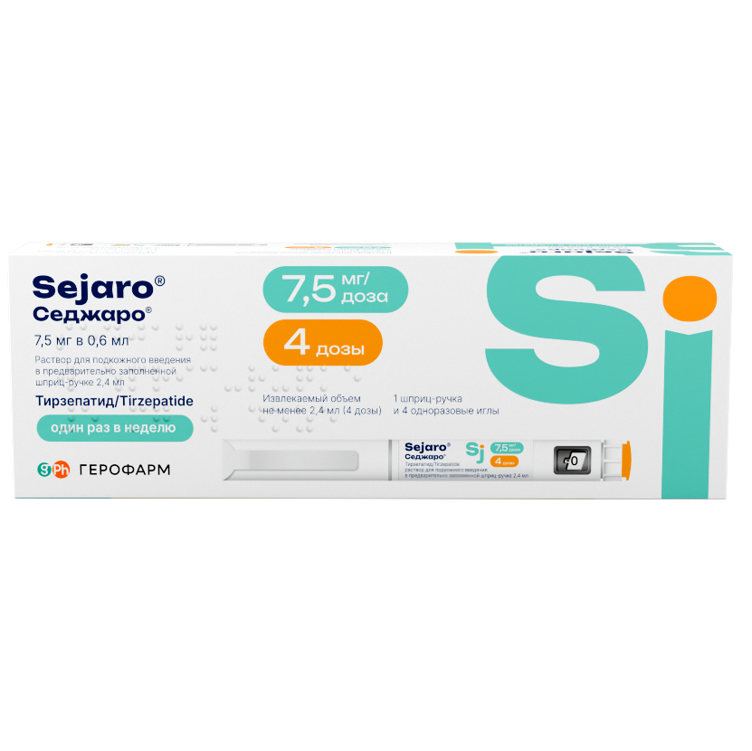 Каждая доза содержит 7,5 мг тирзепатида в 0,6 мл раствора.