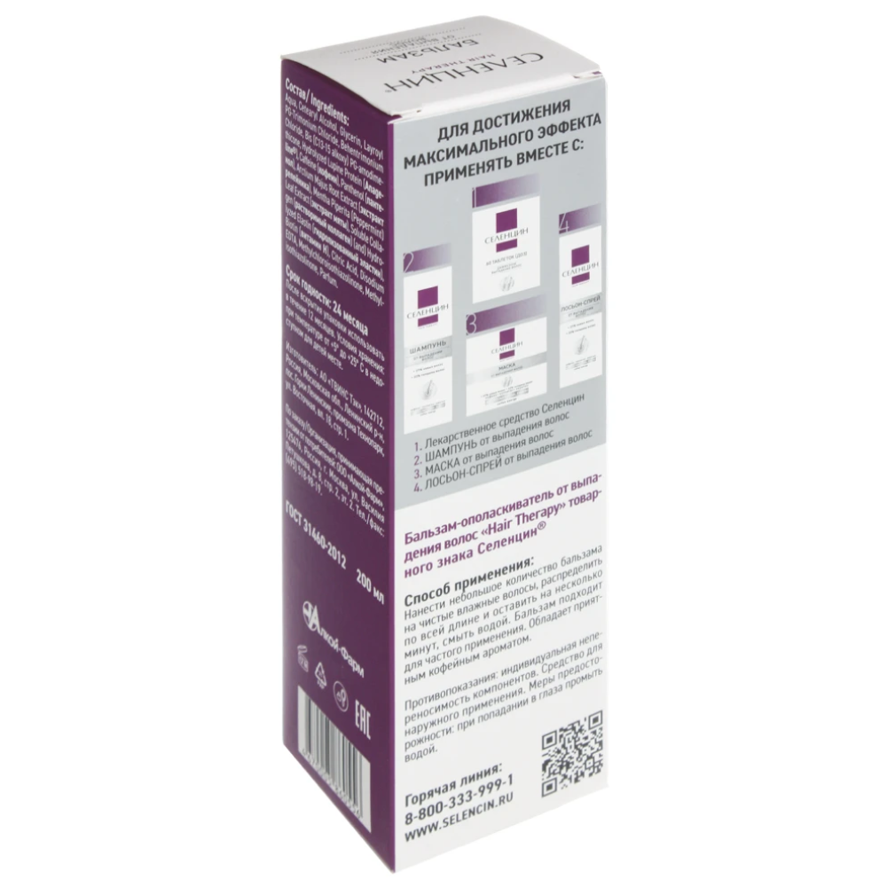 Бальзам-ополаскиватель Селенцин "Hair Therapy" — единственный бальзам, включающий в себя французский запатентованный ингредиент Anageline® для эффективной борьбы с выпадением волос и мощный beauty-коктейль компонентов для восстановления красоты и здоровья волос.
