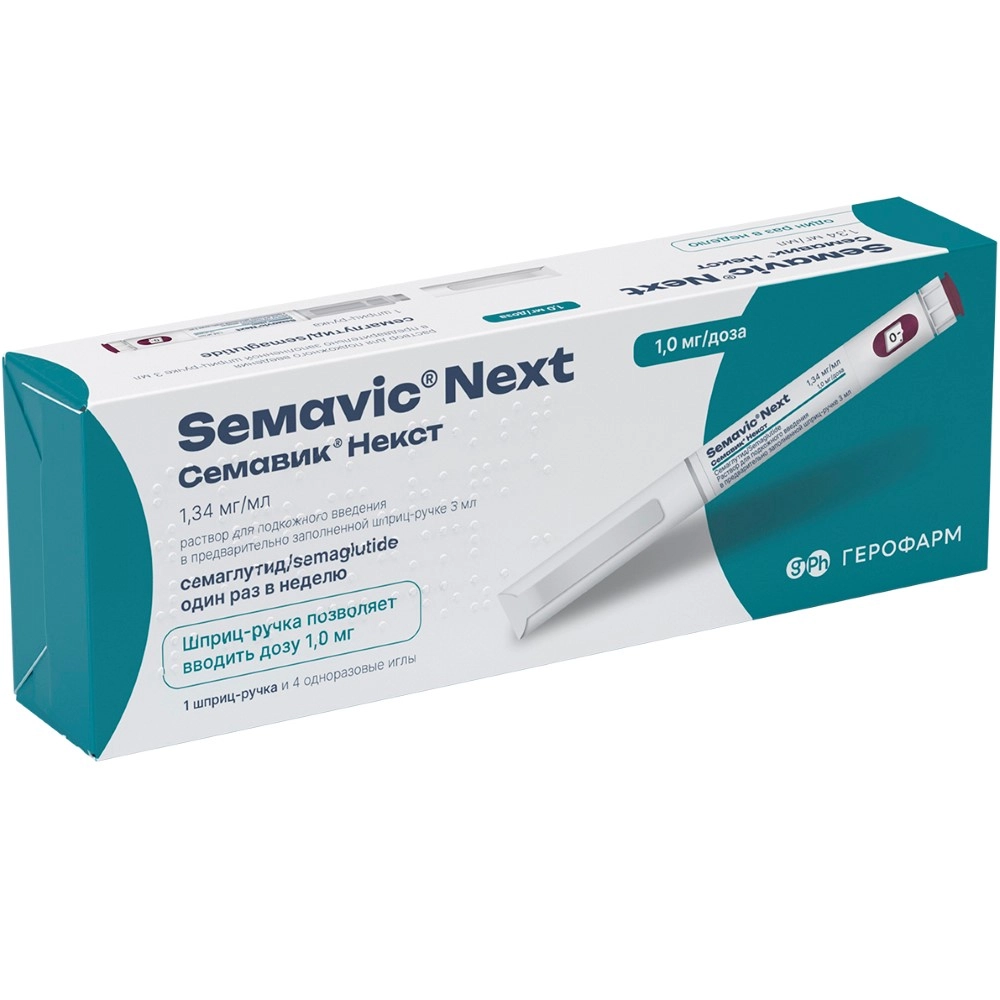 T1/2 семаглутида равен приблизительно 1 неделе. Tmax в плазме составило от 1 до 3 дней после введения дозы лекарственного средства. AUC достигалась спустя 4-5 недель однократного еженедельного применения. После п/к введения семаглутида в дозах 0.5 мг и 1 мг средние показатели его равновесной концентрации у пациентов с СД2 составили около 16 нмоль/л и 30 нмоль/л, соответственно. Экспозиция для доз семаглутида 0.5 мг и 1 мг увеличивается пропорционально введенной дозе. При п/к введении семаглутида в переднюю брюшную стенку, бедро или плечо достигается сходная экспозиция. Абсолютная биодоступность семаглутида после п/к введения составила 89%. Средний объем распределения семаглутида в тканях после п/к введения пациентам с СД2 составил приблизительно 12.5 л. Семаглутид в значительной степени связывался с альбумином плазмы крови (> 99%). Семаглутид метаболизируется посредством протеолитического расщепления пептидной основы белка и последующего бета-окисления жирной кислоты боковой цепи. ЖКТ и почки являются основными путями выведения семаглутида и его метаболитов. 2/3 введенной дозы семаглутида выводится почками, 1/3- через кишечник. Приблизительно 3% от введенной дозы выводится почками в виде неизмененного семаглутида. У пациентов с СД2 клиренс семаглутида составил около 0.05 л/ч. С элиминационным T1/2 примерно 1 неделя семаглутид будет присутствовать в общем кровотоке в течение приблизительно 5 недель после введения последней дозы лекарственного средства.